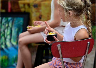 Genieten van kunst maakt hongerig en dorstig: neem plaats op het terras bij IJssalon Veronique, schuif aan bij Brienen of proef iets lekkers van foodtruck Grewada.